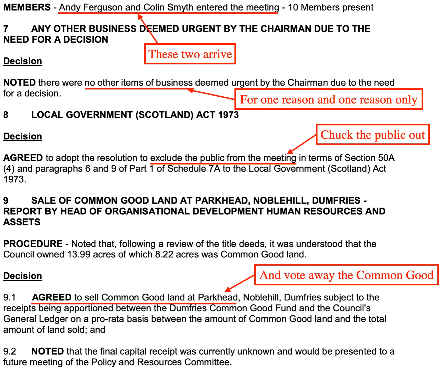 Looks like Dumfries & Galloway Council have been rumbled and caught with their corrupt knickers around their corporate ankles again—this time with the sale of common good land in the Noblehill area of Dumfries.
