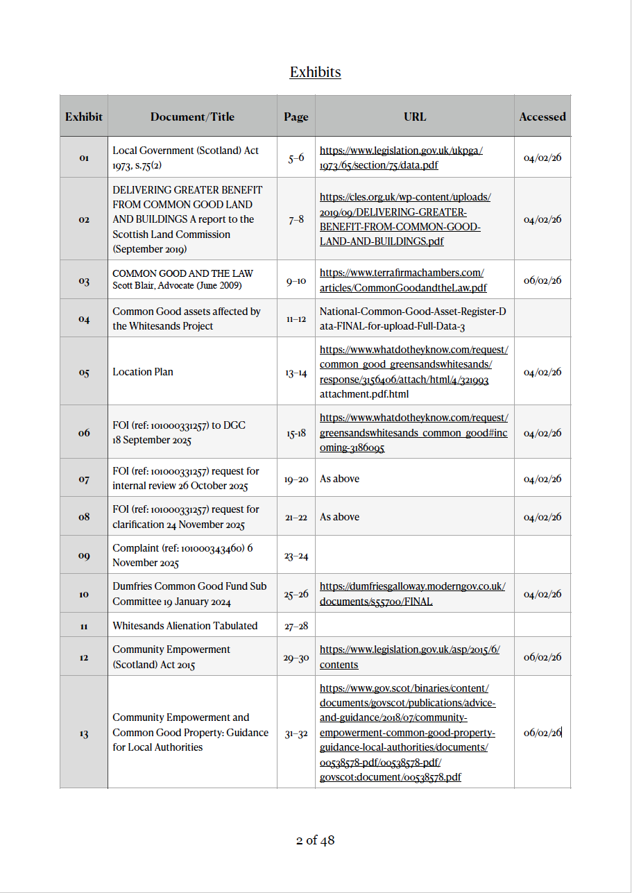 Declaration of Dumfries has now made available the current basis for the legal challenge against Dumfries & Galloway Council and its unlawful appropriation and disposal of the common good assets affected by the Whitesands Flood Protection Scheme.